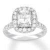 Fabulously brilliant, this beautiful engagement ring features a 2-carat radiant-cut diamond center encircled by sparkling round diamonds Additional round diamonds line the 14K white gold band, bringing the total diamond weight to 2 7/8 carats This ring has Neil Lane's signature inside the band