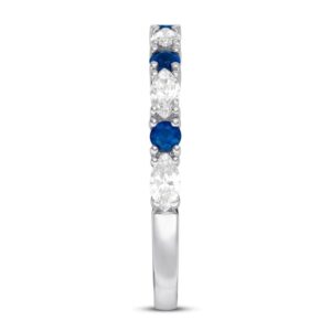 Marquise round diamonds and round natural sapphires alternate along this beautiful wedding band for her . Styled in 14K white gold, the ring has a total diamond weight of 1/2 carat.
